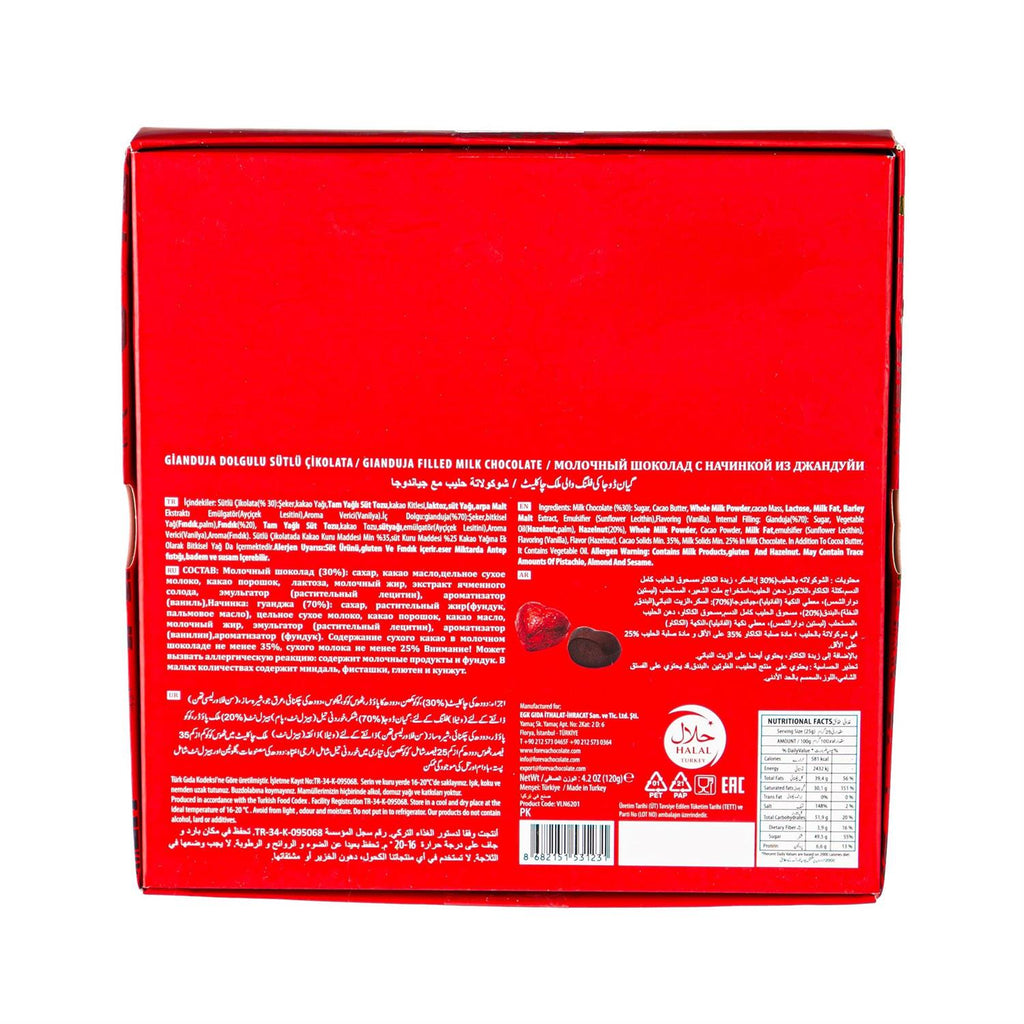 Indulge in the exquisite taste of our Assorted Milk Chocolate Love Box. Weighing 120g (4.2oz), this beautifully crafted box is adorned with an elegant heart design, making it a perfect gift for loved ones. Each piece of chocolate is filled with a luscious hazelnut cream, offering a smooth and rich flavor experience. The vibrant red packaging with gold accents adds a touch of luxury and is ideal for special occasions such as Valentine's Day, anniversaries, or just to show someone you care. Delight in the creamy texture and sophisticated taste with every bite.