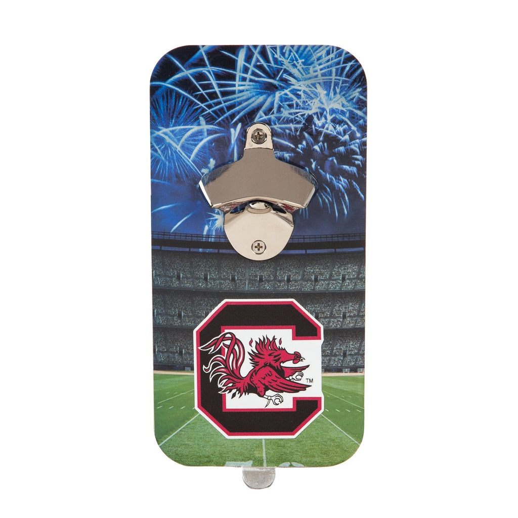 Add an extra dash of spirit and convenience to your next tailgate with this South Carolina Clink-N-Drink magnetic bottle opener featuring a vibrant South Carolina team logo! It is easily mounted to SUVs, the fridge or any other flat metal surface with hea