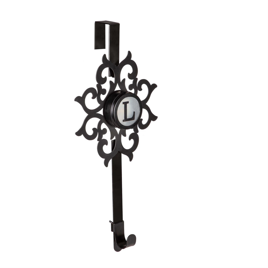 Take any display to the next level with this Monogram Lit Over the Door Hanger. Add a monogram initial for extra pizzazz. Just choose your letter, slip it into the design and even turn on the light for a personalized touch. Hang up a flag or wreath to bring a playful touch to any home. The metal design is made durable and weather-resistant so it can be used year after year.