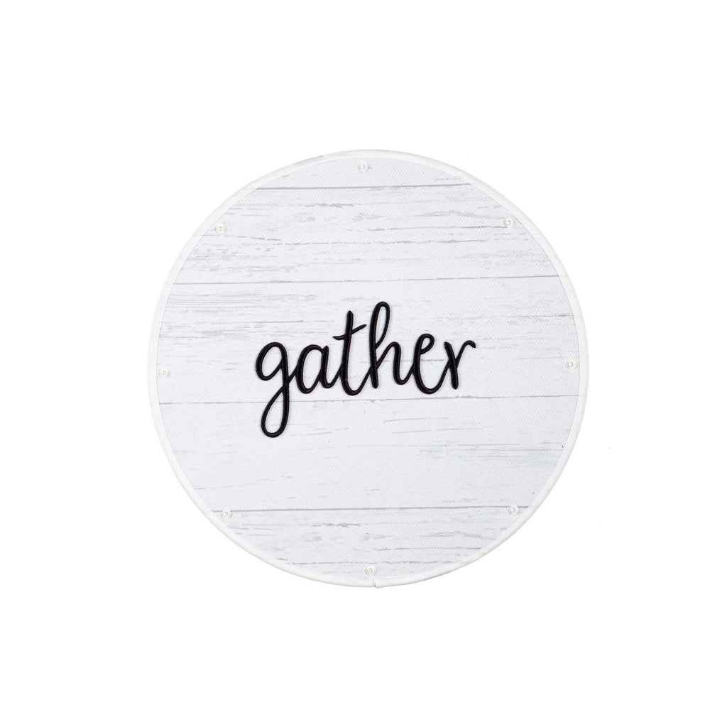 Make sure your front door is ready for seasonal get-togethers with this Gather Sassafras Switchable Door Décor Insert. This insert features a sentimental "gather" message in elegant black letters against a white wood background that offers a rustic touch. The insert easily snaps onto the back of our sassafras frames for an integrated look you can change season after season. The decor is crafted from 100% polyester, making it safe for indoor or outdoor use. Our new sassafras door décor features a hidden loop on the back which can be paired with our over-the-door hangers, sold separately.