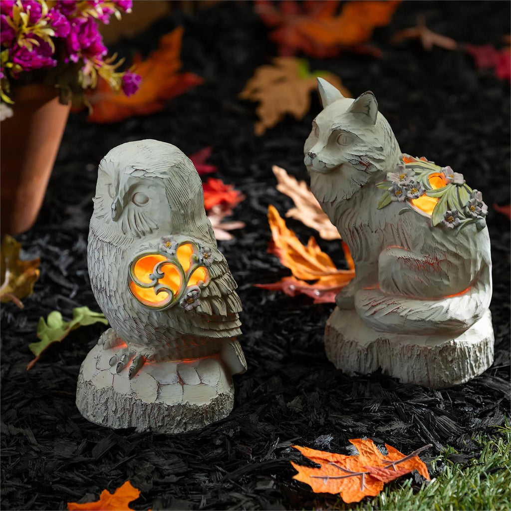 Add a touch of whimsy to your outdoor space with this charming Fall Animal Solar Statue. Standing at 9 inches tall, this intricately detailed statue features an enchanting animal design that captures the spirit of autumn. Crafted from durable material, it includes solar-powered LED lights that illuminate through decorative cutouts, creating a warm and inviting glow. Perfect for gardens, patios, or walkways, this statue brings a playful yet elegant touch to your seasonal décor. Enjoy the beauty of nature day and night with this captivating garden accent.