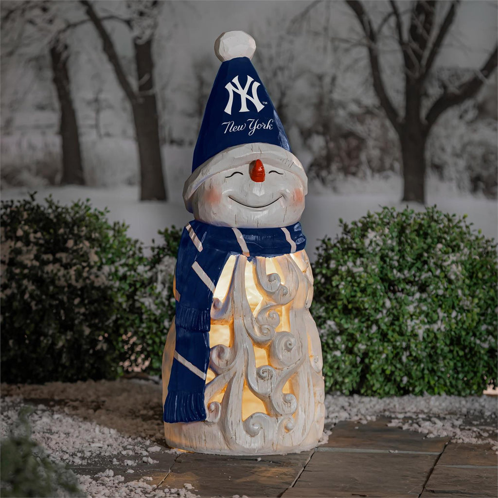 Celebrate the holiday season with the charming New York Yankees Snowman LED Statuary. Standing at nearly 26 inches tall, this delightful snowman is decked out in team colors, complete with a cozy scarf and beanie. Crafted with intricate detailing, it illuminates with a warm LED glow, creating a festive atmosphere in any room. This piece is perfect for Yankees fans looking to add a touch of team spirit to their holiday décor. Its robust design ensures it will be a cherished part of your seasonal decorations year after year.