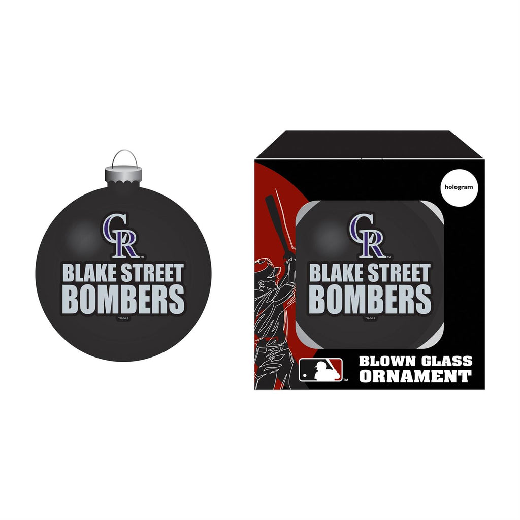 Celebrate your love for the Colorado Rockies with this exquisite blown glass ornament. Perfect for any baseball fan, this ornament features a sleek black design with the iconic team logo. Measuring 3.14 inches in diameter and 3.5 inches in height, it's an ideal addition to your holiday décor or sports memorabilia collection. Handcrafted with precision, its durable glass construction ensures lasting beauty season after season. Hang it on your tree or display it as a part of your year-round décor to showcase your team spirit.