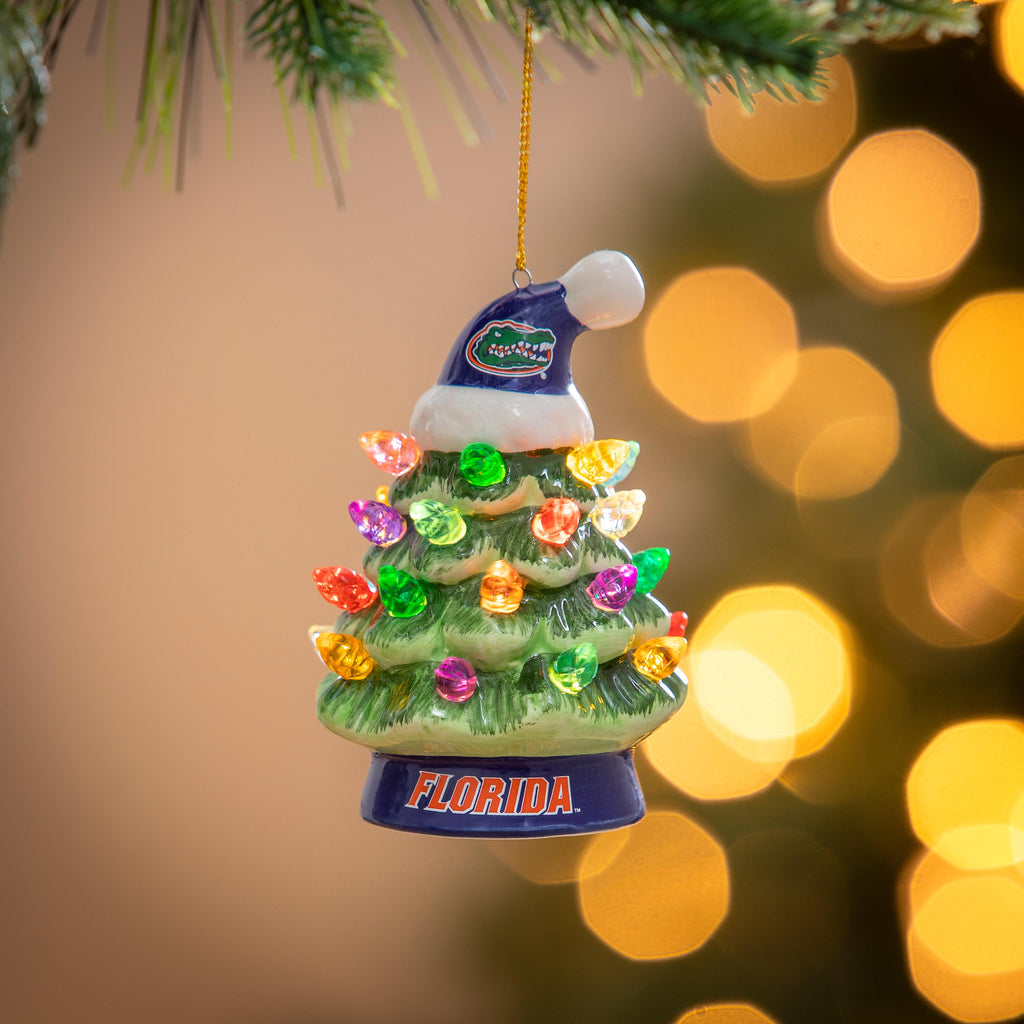 4" LED Ceramic Christmas Tree Ornament with Team Santa Hat, University of Florida