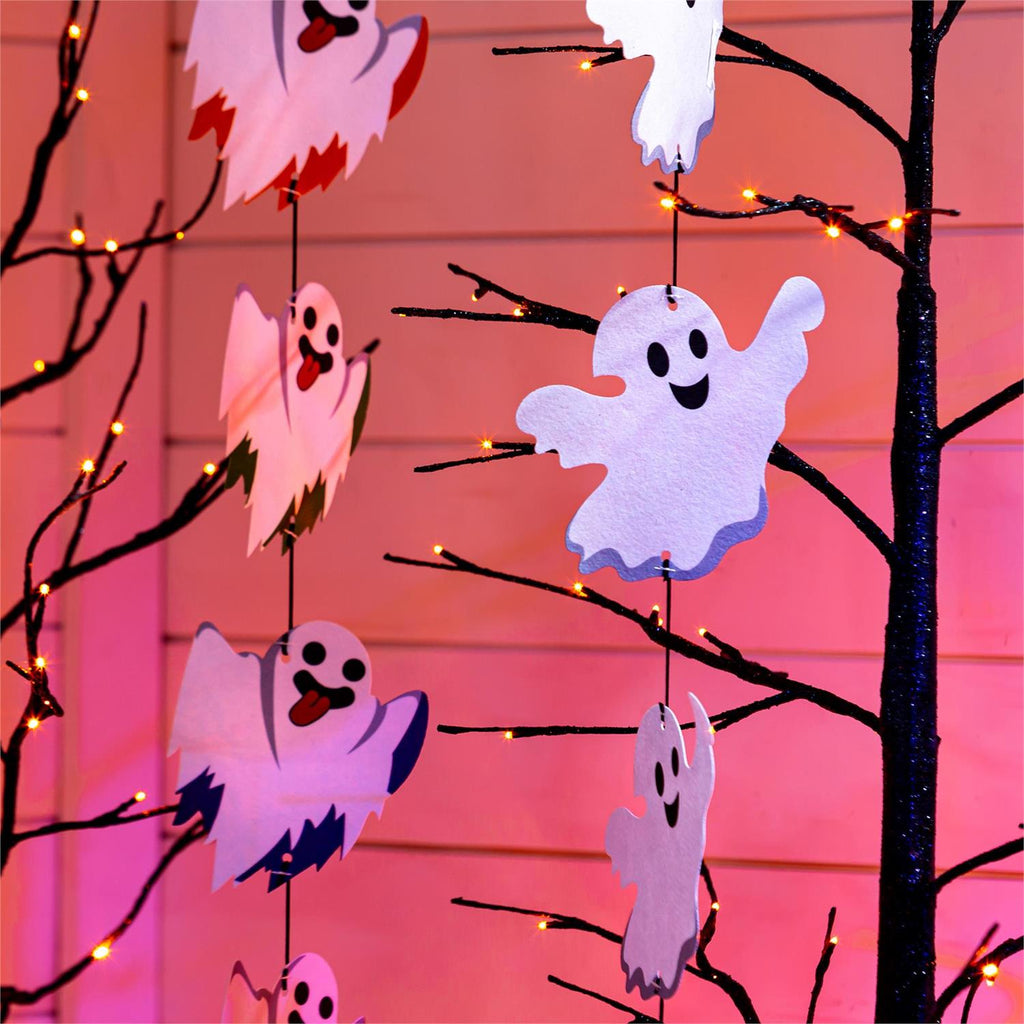 Transform your outdoor space into a spooky spectacle with these Halloween Ghosts Hanging Tree Décor windsocks. Measuring 60 inches in height, these delightful ghostly figures bring a playful yet eerie charm to your Halloween decorations. Crafted with vibrant colors and whimsical designs, these windsocks sway gracefully in the breeze, creating a lively atmosphere for trick-or-treaters. Perfect for hanging from trees, porches, or patios, they add a festive touch to any Halloween display. Made from durable materials, these decorations are designed to withstand the elements and ensure a hauntingly good time all season long.