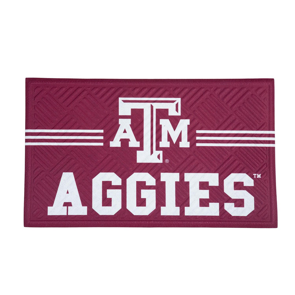 Showcase your team spirit with the Embossed Mat featuring a cross hatch design and Texas A&M branding. Measuring 30 inches in width and 18 inches in height, this mat is perfect for any entryway, patio, or sports room. The embossed surface provides a stylish texture while helping to trap dirt and moisture, keeping your floors clean. Made from durable materials, this mat is designed to withstand heavy foot traffic and the elements. It's an ideal addition for any Texas A&M fan looking to add a touch of pride to their home decor.
