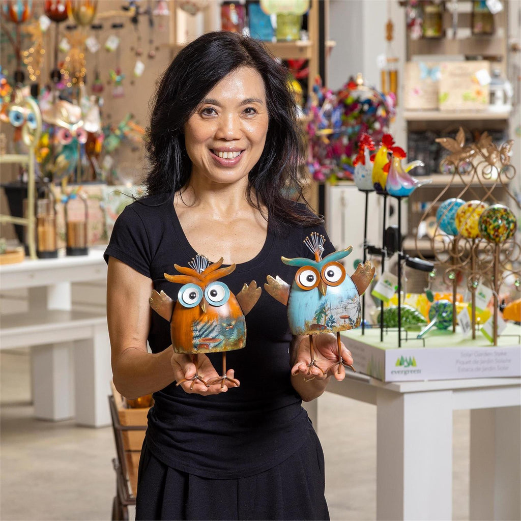 Add a whimsical touch to your garden with the Garden of Wonder Metal Mini Owls Statue. Standing at 8.75 inches tall, these charming owls feature a delightful blend of rustic and colorful details. Crafted from durable metal, these statues are perfect for outdoor or indoor display, infusing your space with personality and charm. Their playful design and vibrant colors make them a standout addition to any garden setting, suitable for all seasons. Ideal as a thoughtful gift for bird lovers or as a unique decorative accent for your own home.