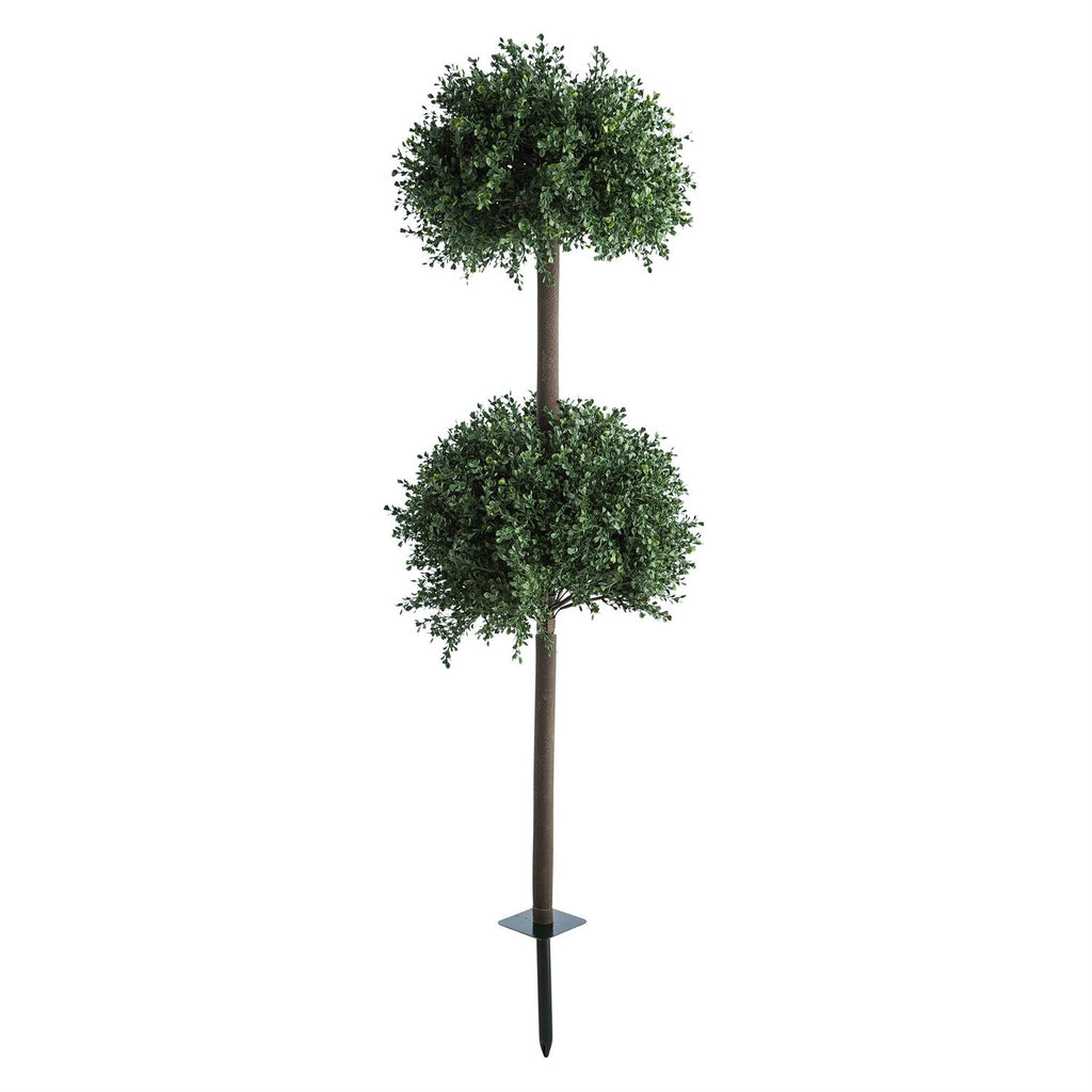 Elevate your garden or entryway with the elegant Faux Boxwood Double Topiary Sphere. Standing at 48 inches tall with a 20-inch diameter, this lifelike topiary offers the lush beauty of boxwood without the maintenance. Perfect for year-round display, it adds a touch of sophistication to any space. Crafted from high-quality materials, the double sphere design brings texture and depth, making it a stunning focal point. Ideal for both indoor and outdoor use, this topiary stake ensures effortless style and charm.