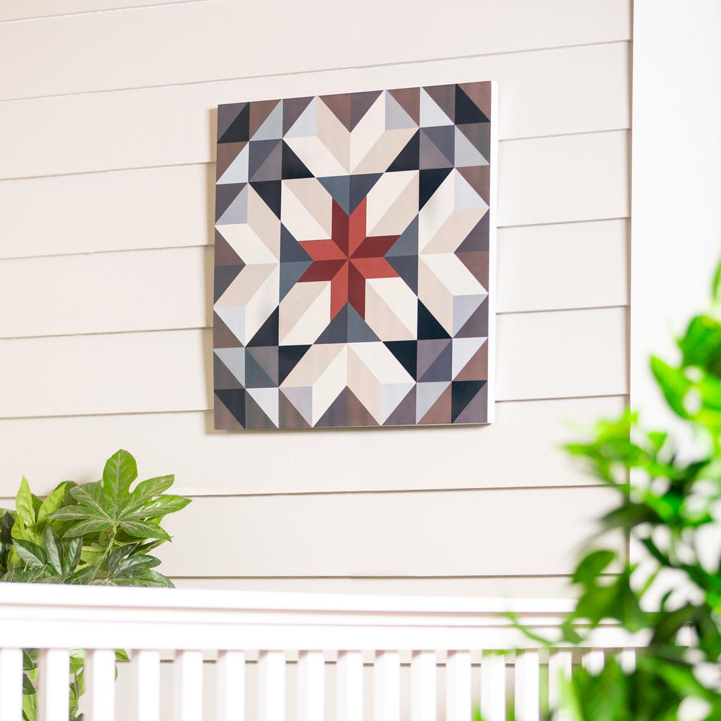 Enhance your outdoor space with this stunning Metal Barn Art, designed to bring a touch of rustic elegance to any exterior wall. Measuring 24 inches square, this piece features a captivating geometric pattern with a striking star motif at its center. The art is crafted from durable metal, ensuring it withstands various weather conditions while maintaining its vibrant colors. Ideal for adding a focal point to barns, patios, or garden walls, this décor piece combines traditional charm with modern style, making it a versatile addition to any home. Easy to mount, it’s a perfect way to infuse personality into your outdoor areas.