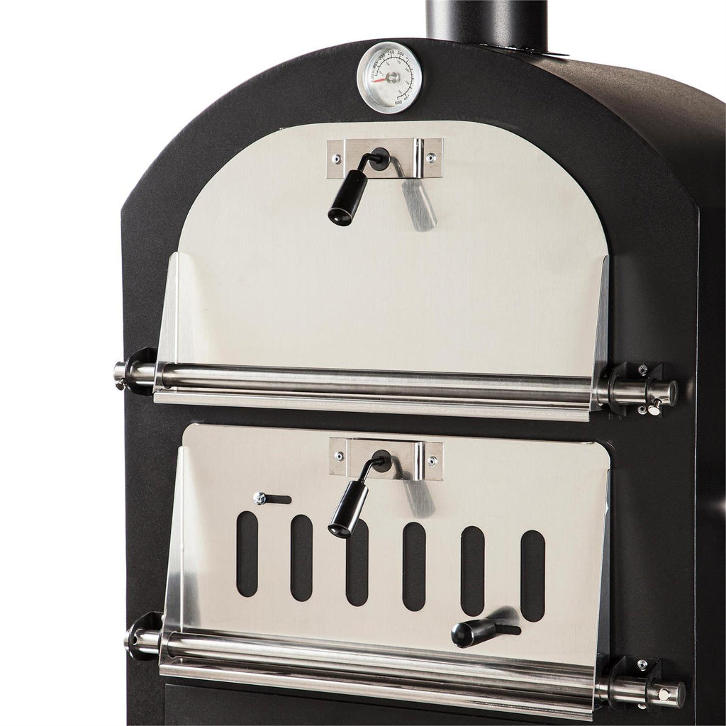 Elevate your outdoor cooking experience with this versatile Charcoal Grill/Oven. Designed for both grilling and baking, this firepit combines functionality and style. Its robust construction ensures durability, while the spacious grill area allows you to prepare meals for family and friends. The vertical design, measuring 25.39 inches in length, 19.68 inches in width, and 61.42 inches in height, fits comfortably in any backyard or patio setting. Equipped with a built-in thermometer and a convenient pull-out ash drawer, this grill/oven is perfect for those who love to cook outdoors. Enjoy everything from grilled meats to perfectly baked pizzas with this all-in-one outdoor cooking solution.