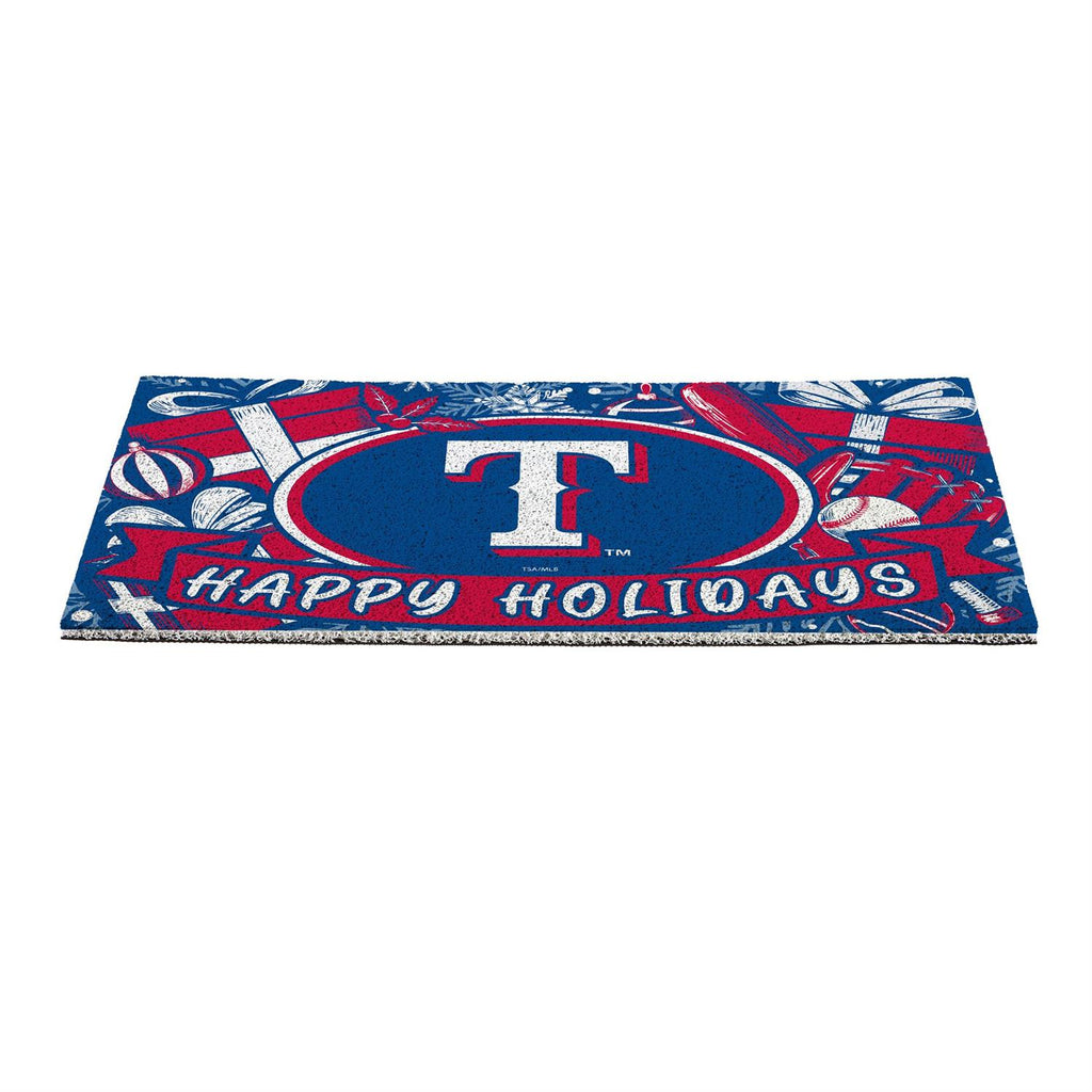 Celebrate the festive season with the Texas Rangers Holiday PVC Mat, designed to bring team spirit and holiday cheer to your doorstep. Measuring 28 inches by 16 inches, this mat is the perfect size for entryways, adding both function and flair. Crafted from durable PVC, it's built to withstand the elements while keeping your home clean from dirt and debris. The vibrant design features classic holiday elements alongside team motifs, making it a great gift for any Rangers fan. Enhance your holiday decor with this versatile and eye-catching mat.
