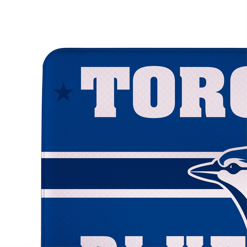 Show off your team spirit while enjoying comfort with the Toronto Blue Jays Anti-Fatigue Mat. Perfect for kitchens or workspaces, this mat offers support and reduces stress on your feet during long periods of standing. The vibrant team colors and logo make it a standout piece for any fan. Measuring 18"x30", it fits perfectly in front of counters or sinks, providing both function and fandom. Crafted from durable materials, this mat is designed to withstand everyday use while maintaining its bold look.