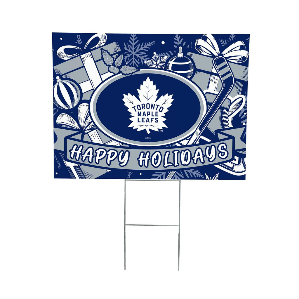 Celebrate the holidays with your favorite team by displaying this Toronto Maple Leafs Yard Sign in your garden. Measuring 24 inches by 18 inches, this sign is perfect for showing your team spirit and holiday cheer. The festive design features the iconic team logo surrounded by seasonal elements, making it a standout piece in any yard. Made from durable materials, it's designed to withstand the winter weather, ensuring your team pride remains on display. Easy to install, this sign is a great addition to any fan's holiday decorations.