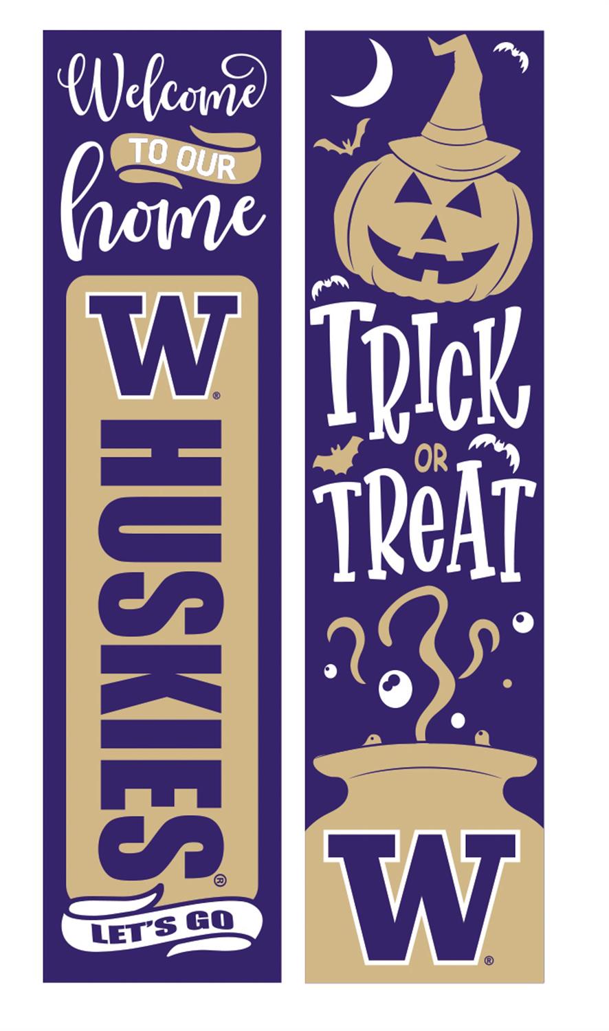Showcase your Huskies pride and welcome guests with this University of Washington double-sided porch leaner. Perfect for Halloween and the fall season, this leaner features vibrant purple and gold colors, adding a spirited touch to your home's exterior. Its slim profile makes it an excellent fit for any porch or entryway, while the durable construction ensures it lasts through various weather conditions. Whether you're cheering on your team or celebrating the season, this versatile décor piece is a must-have for any fan.