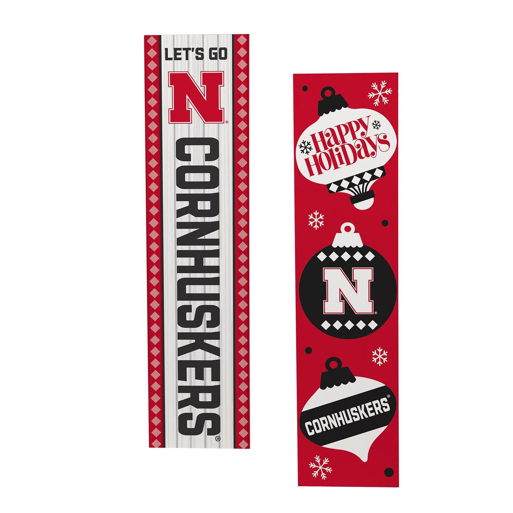 Celebrate the holiday season while showcasing your school spirit with this University of Nebraska 46" Double Sided Leaner. Perfect for your porch or entryway, this leaner features a festive design that proudly displays your support for the Cornhuskers. Made from durable materials to withstand the elements, this leaner is a great addition to your holiday decorations. Its double-sided feature ensures visibility from multiple angles, adding a touch of team pride to your home exterior.