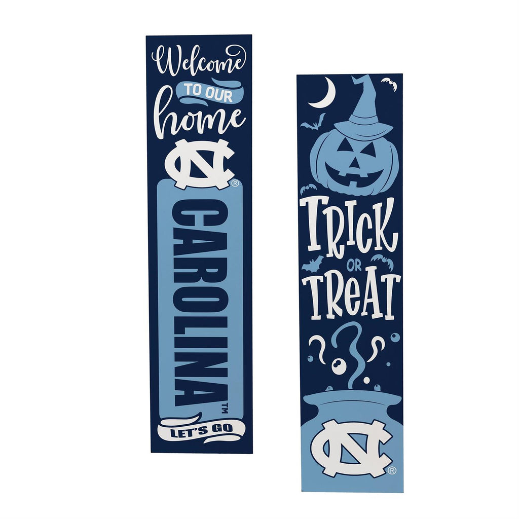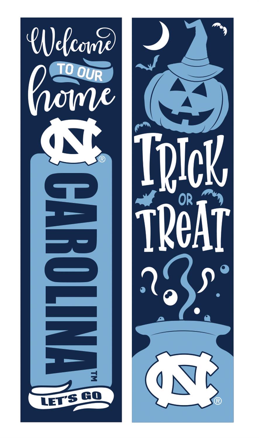 Show your team spirit with the University of North Carolina Double Sided Leaner. Perfect for Halloween and beyond, this 46-inch porch leaner adds a festive touch to any home. Its durable construction ensures it withstands the elements, making it ideal for outdoor display. With vibrant colors and a welcoming message, it's a great way to show support for your favorite team while greeting guests. The slim design allows for easy placement on porches or entryways, making it a versatile addition to your seasonal décor.