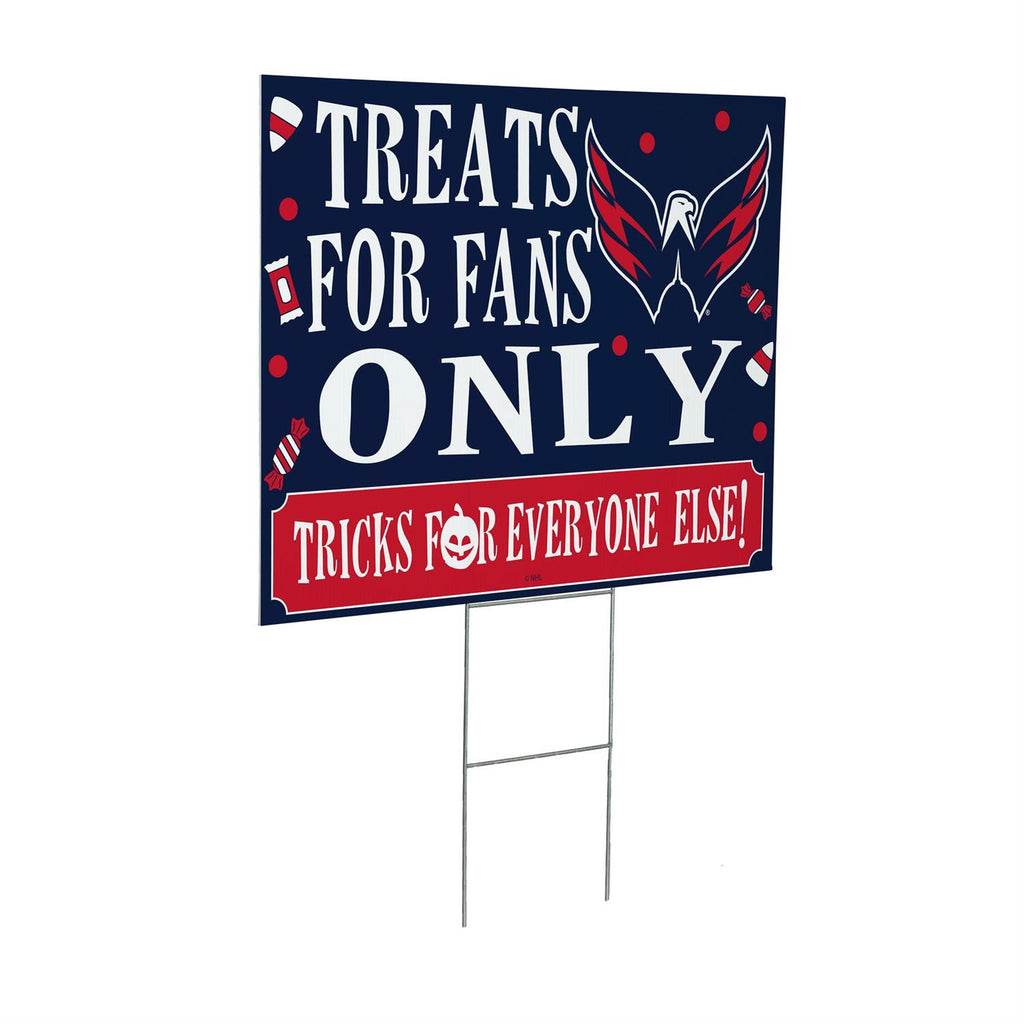 Show off your team spirit this Halloween with the Washington Capitals Yard Sign, designed especially for the ultimate fan. This vibrant sign measures 24 inches by 18 inches, making it a standout piece in your garden or front yard. Crafted from durable materials, it withstands the elements while maintaining its bold colors and design throughout the season. The playful message, 'Treats for Fans Only,' adds a fun twist to your Halloween décor, welcoming fellow fans and playfully warning rivals. Easy to set up and reposition, it’s a perfect addition for those who love combining sports with seasonal celebrations.