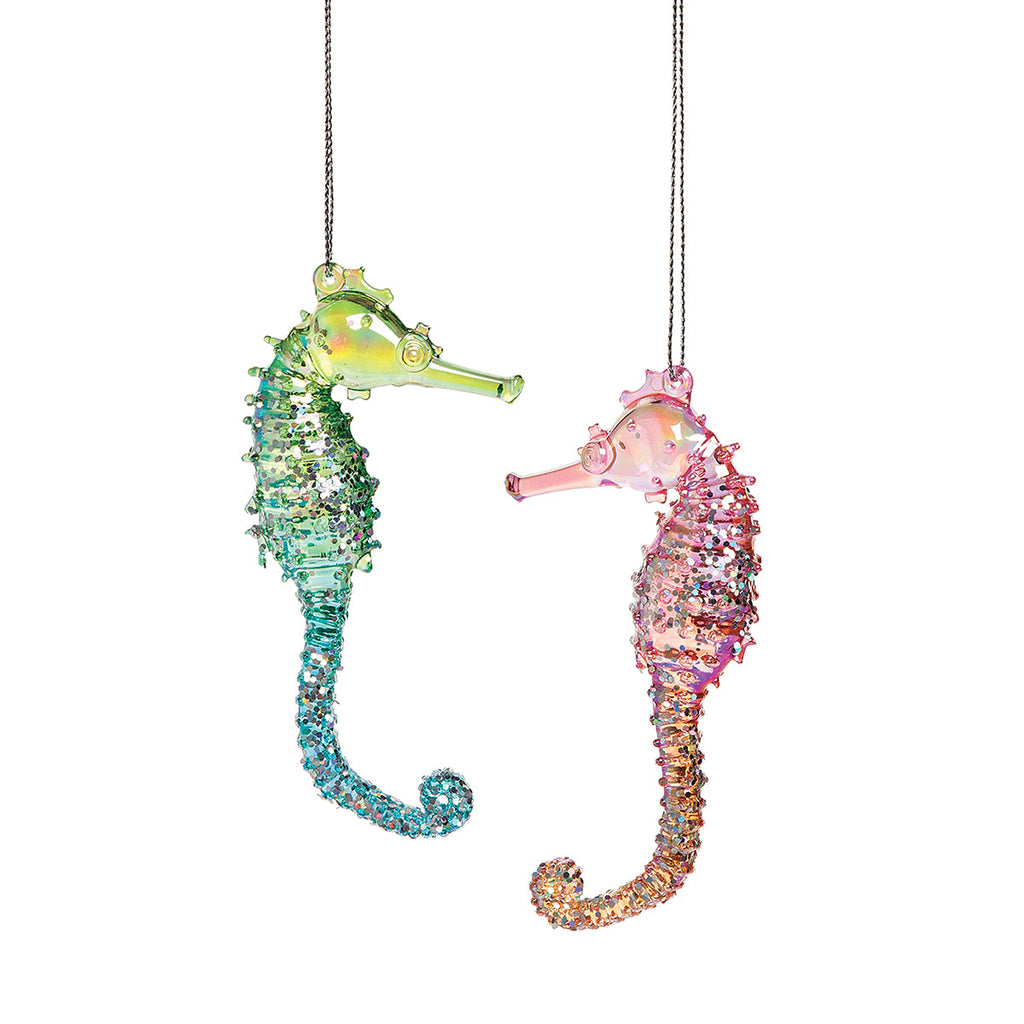 Add a touch of whimsy to your decor with the #Sparkle Seahorse Ornament. Its shimmering design captures light beautifully, making it a stunning focal point for any space. Perfect for beach lovers and a delightful gift for any occasion.