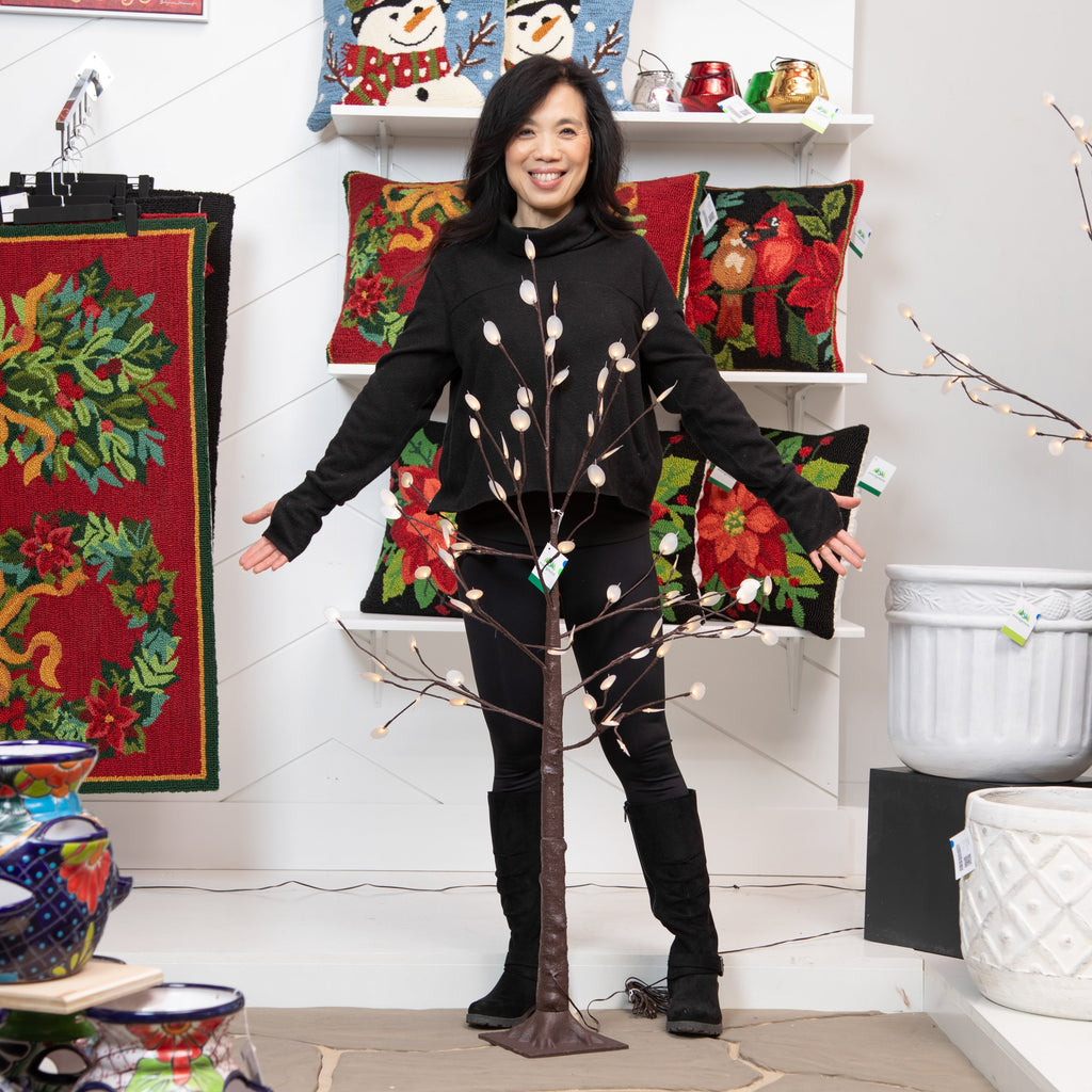 Features a variety of themes including traditional red and green, rustic burlap, snowy accents, and modern LED lighting effects.
