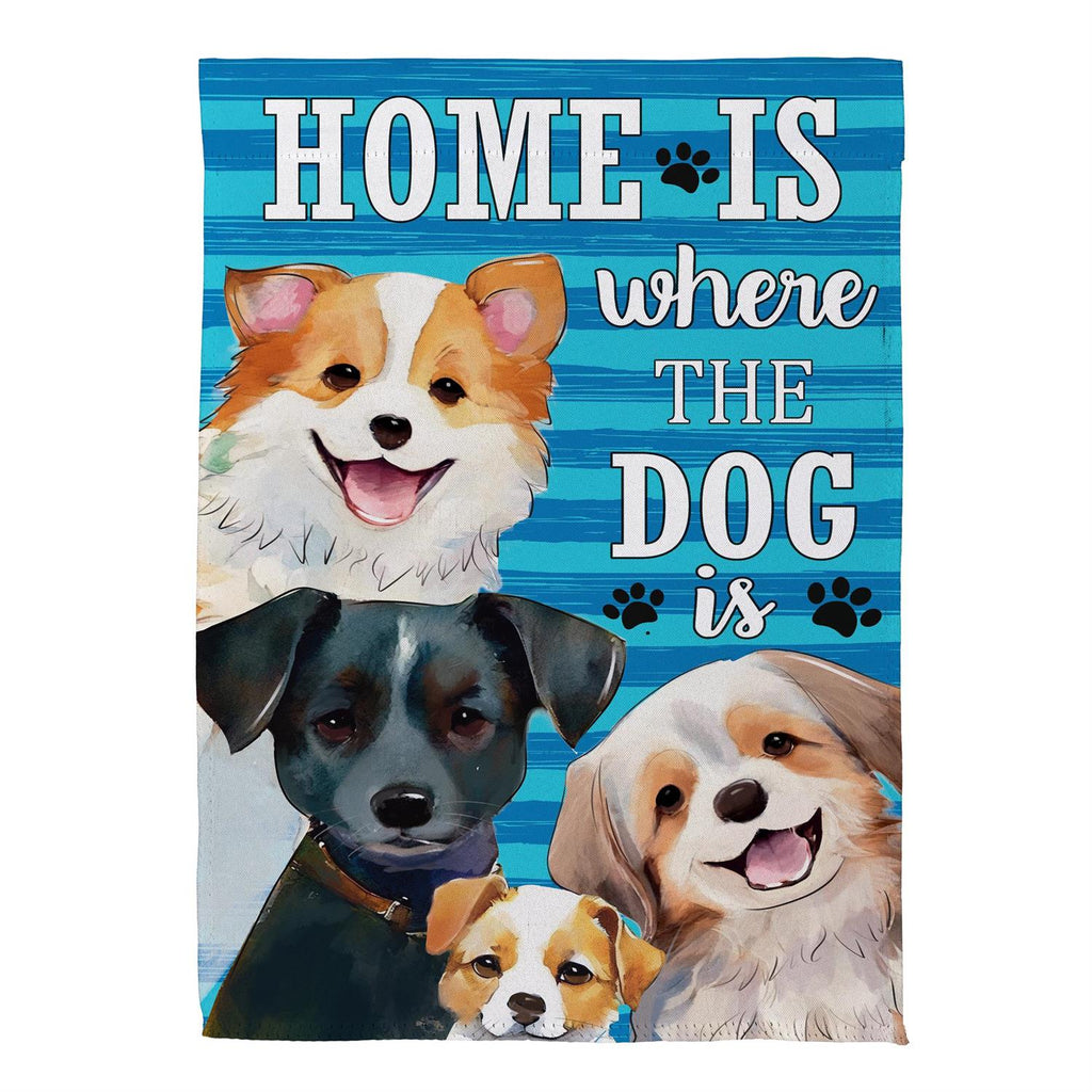 Celebrate your love for dogs with the 'Home Is Where The Dog Is' Suede Garden Flag. Perfect for any dog lover, this charming flag features an adorable canine design on a vibrant blue background. Crafted from durable suede, it offers a soft texture while ensuring long-lasting outdoor use. Measuring 18.0 x 12.5 inches, it's ideal for adding a touch of personality to your garden or front yard. Whether it's spring, summer, or fall, this flag is a delightful accent to your outdoor decor.