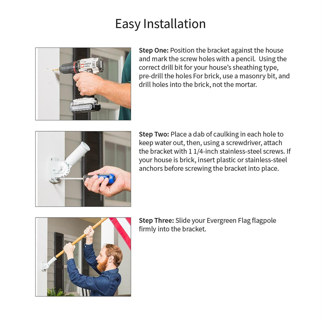Hang your flag pole proudly from your home with this bracket set. Lightweight yet durable, our white finish adjustable aluminum bracket, formed by casting, is easy to adjust to any position when displaying your different styles of flags. Created with the highest quality materials, the weather-proof aluminum is coated for protections from the outdoor elements to ensure use season after season.