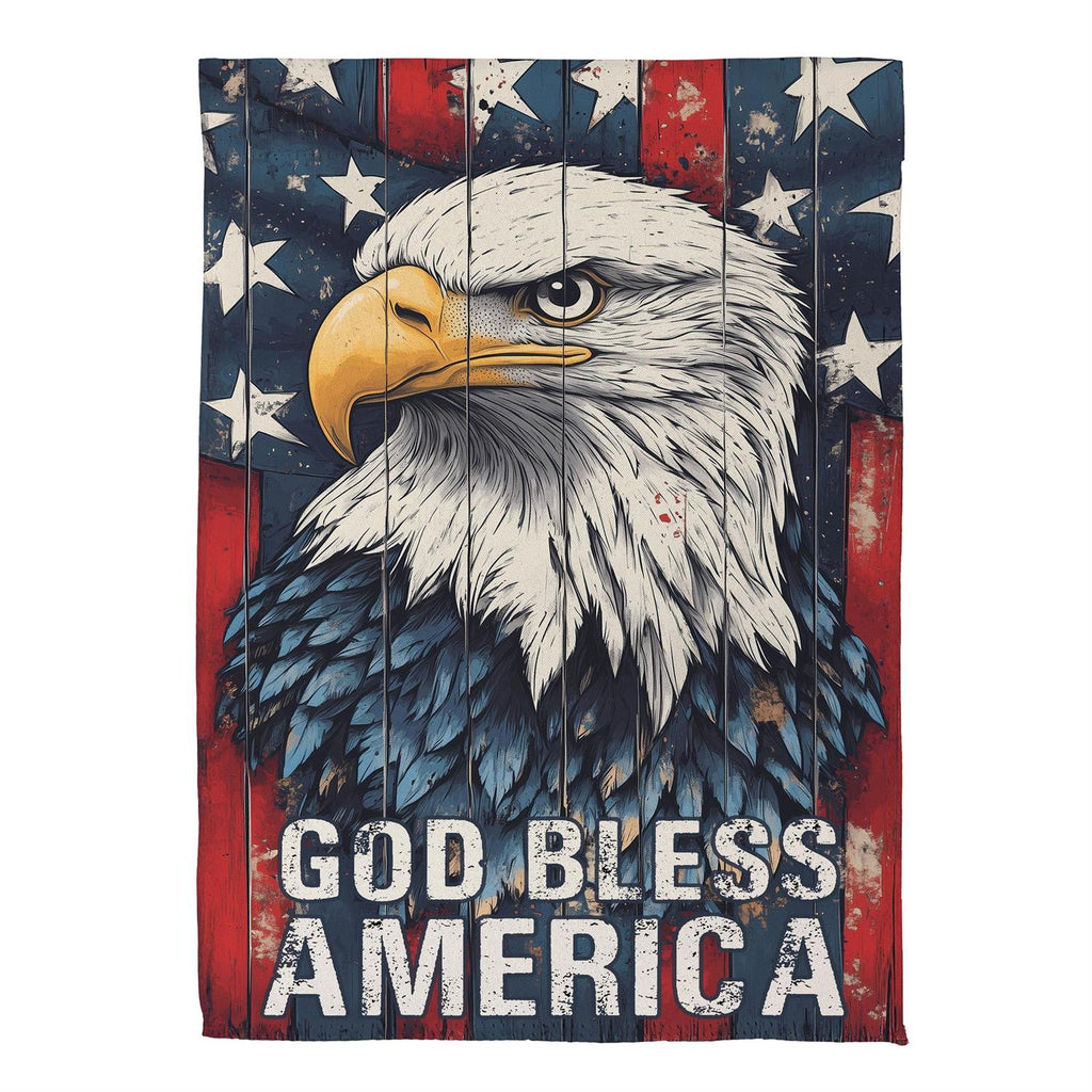 Showcase your patriotic spirit with the "God Bless America Eagle Suede House Flag." Crafted from durable suede, this striking flag features a majestic eagle against a backdrop of stars and stripes. Measuring 43 inches in length and 29 inches in width, it is designed to make a bold statement on any porch or garden. The rich colors and detailed imagery ensure it stands out, while the lightweight material allows for easy hanging and fluttering in the breeze. Ideal for national holidays or year-round display, this flag is a perfect addition to any American home.