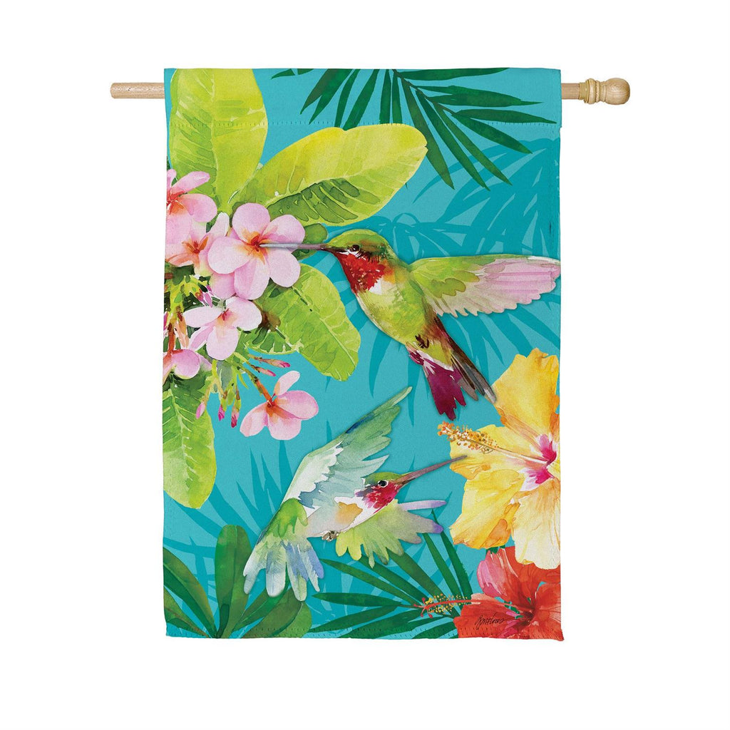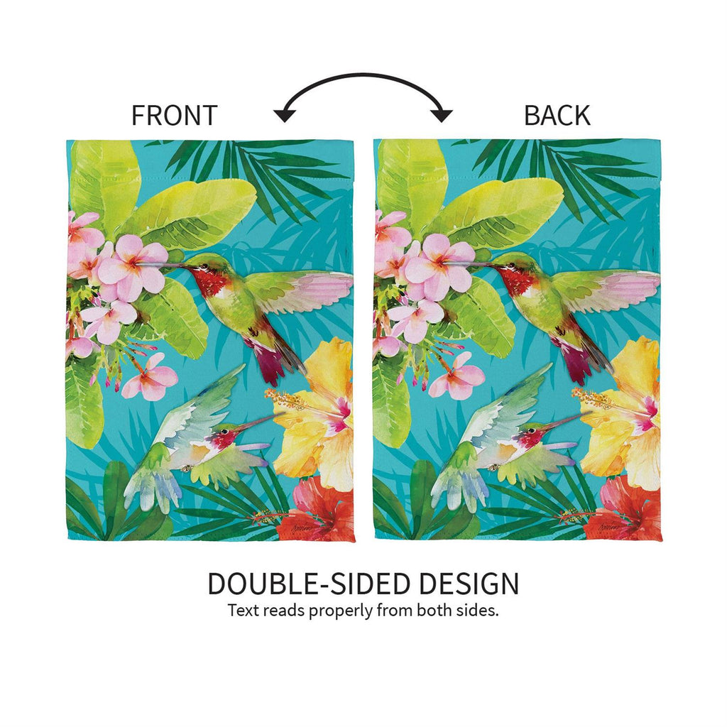 Transform your outdoor space into a tropical paradise with the Paradise Birds Suede House Flag. Measuring 43 inches in length and 29 inches in width, this vibrant flag features a stunning design of exotic birds and lush foliage. Made from durable suede, it is designed to withstand the elements while maintaining its bright and colorful appearance. Perfect for adding a splash of color to your garden or front porch, this flag is an ideal choice for nature lovers and those looking to enhance their home's curb appeal.