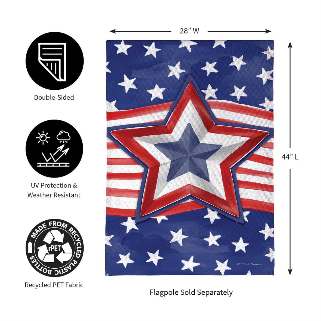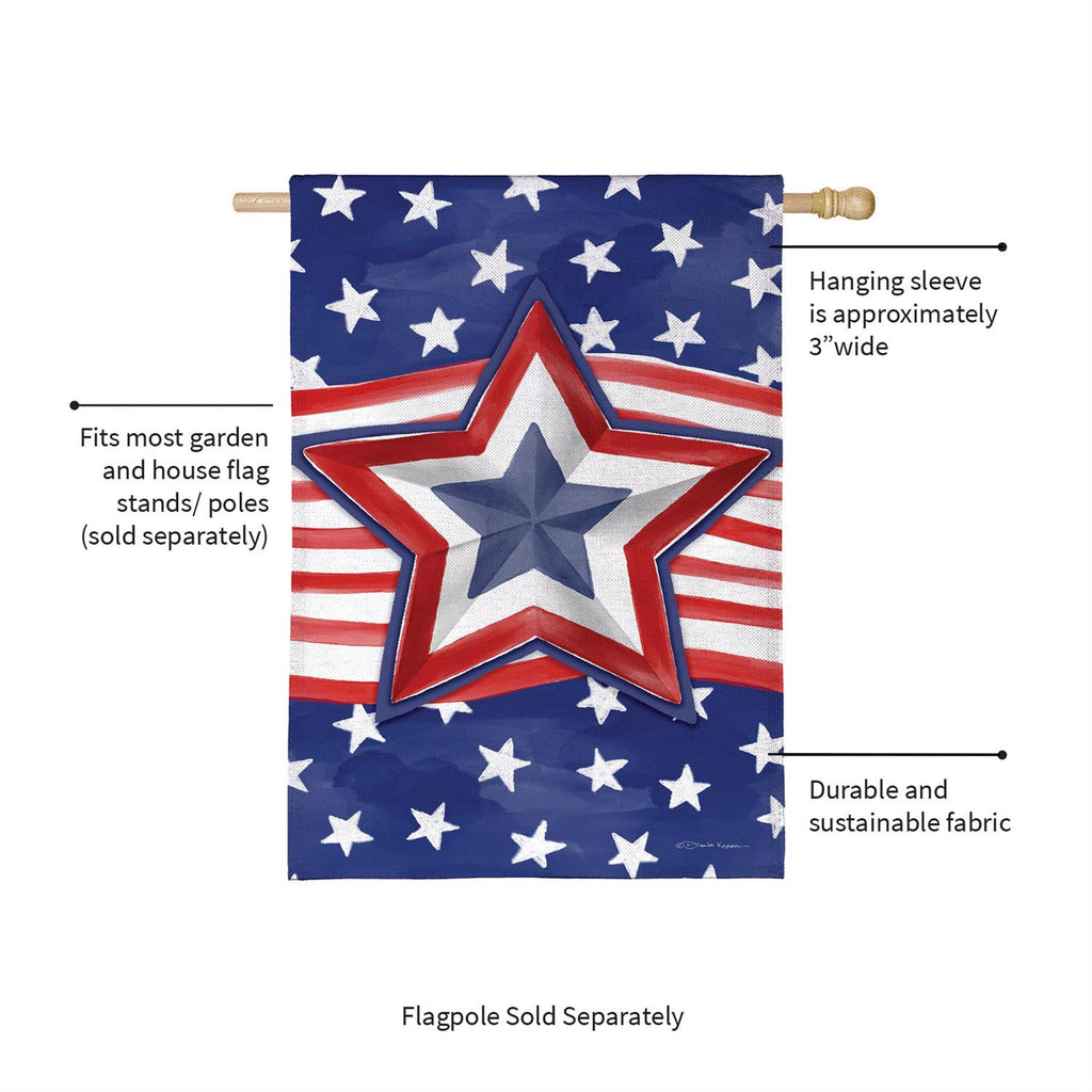 Elevate your home’s exterior with the Patriotic Star Power Burlap House Flag, designed to showcase your love for country and style. Crafted from durable burlap, this flag features a striking star design with bold red, white, and blue colors, perfect for celebrating national holidays or adding a touch of Americana to your decor. Measuring 44 inches in length and 28 inches in width, it fits standard flag poles, making it ideal for porches, patios, or gardens. The weather-resistant material ensures longevity, allowing you to display it proudly all season long. Enhance your curb appeal with this vibrant and festive flag.