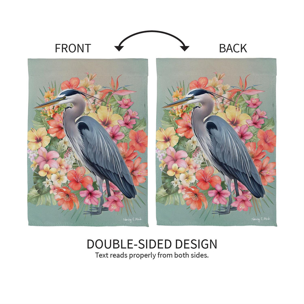 Enhance your outdoor space with the Tropical Heron Suede House Flag. Measuring 43 by 29 inches, this sophisticated flag features a stunning heron surrounded by vibrant tropical flowers. Made from high-quality suede material, it offers a luxurious texture and excellent durability against the elements. Ideal for adding a pop of color and a touch of elegance to your garden or front porch, this flag is a perfect choice for nature enthusiasts and bird lovers alike. Its vivid colors and intricate details will make it a standout piece in any setting.