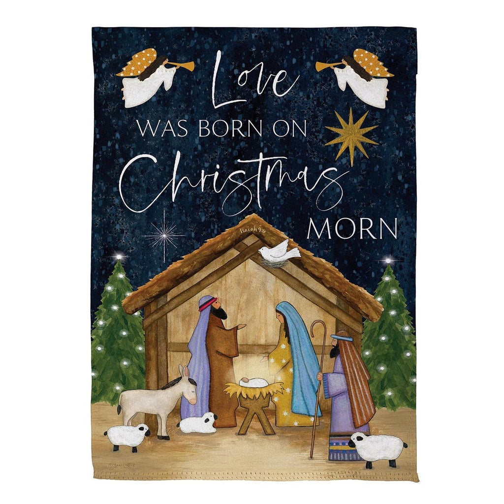 Celebrate the season with this exquisite suede garden flag, featuring a heartwarming nativity scene. The "Love Was Born on Christmas Morn" message is elegantly displayed, enhancing the festive spirit in your outdoor space. Crafted from durable suede, this flag is designed to withstand the winter elements while maintaining its vibrant colors and intricate details. Measuring 12.5 inches in width and 18 inches in height, this flag is perfect for adding a touch of holiday cheer to your garden or entryway. Whether displayed alone or alongside other seasonal decorations, this flag is a beautiful reminder of the true meaning of Christmas.