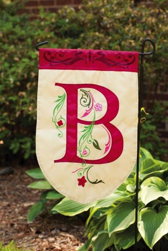 Add a personalized touch to your garden with the Floral Scroll Monogram I Applique Garden Flag. Crafted with elegance, this flag showcases a beautifully designed monogram adorned with intricate floral patterns. The rich red and green hues stand out against the neutral background, making it a perfect decorative piece for any season. Made from durable materials, this flag is designed to withstand outdoor conditions while maintaining its vibrant colors. Measuring 18 inches in length and 12.5 inches in width, it's an ideal size to make a welcoming statement in your garden or yard.