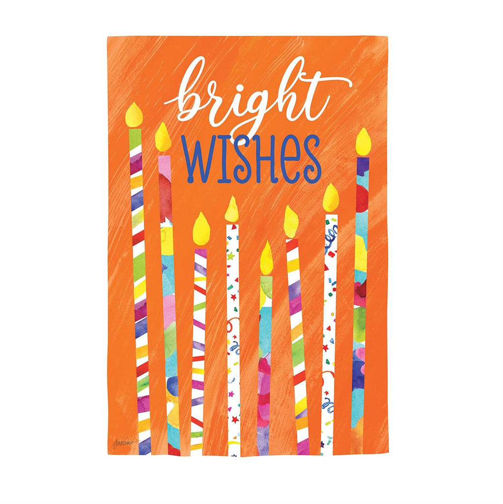 This charming flag adds an extra special touch to any home. It features a birthday party themed design with vibrant colors. Flag is crafted of medium-weight suede fabric made from recycled plastic that provides a soft and durable texture. Artwork is heat transferred onto the sun-blocking material so that it is easily viewed from both sides. The weatherproof flag will not fray or fade with continued outdoor use. This flag features a sleeve for use with any standard flagpole or stand, sold separately.