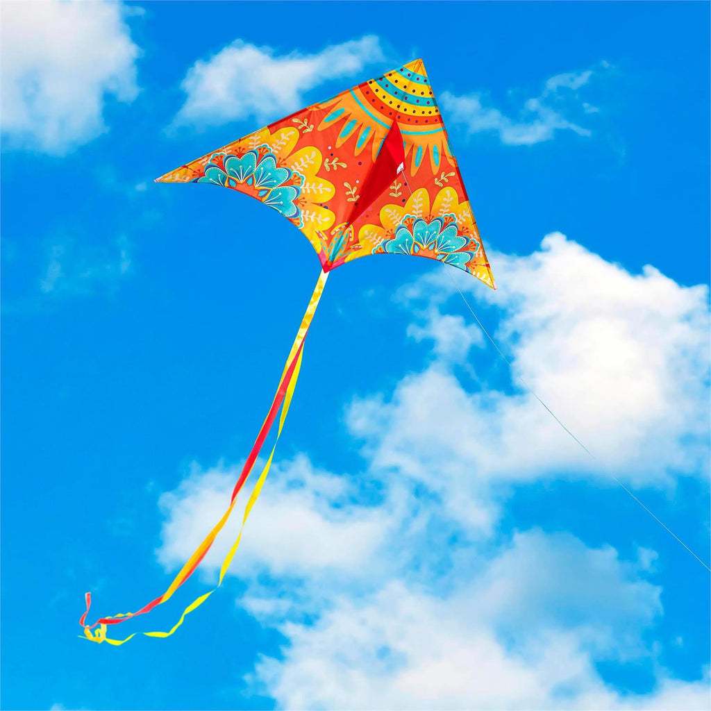 Harness the wind and experience endless fun with our EverFlier Kites! This Orange Mandala Floral Delta Kite creates a mesmerizing show in the air with its unique and colorful design. The fade and tear-resistant nylon material delivers a durable piece that can be flown with confidence. All kites are easy to assemble, easy to fly, and easy to store for the next windy day. Perfect for all ages and skill levels, this kite will provide hours of fun and entertainment.