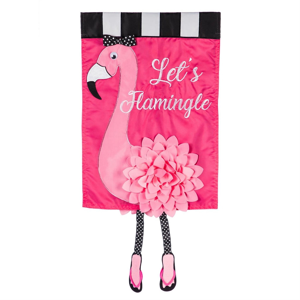 Let's Flamingle Applique House Flag