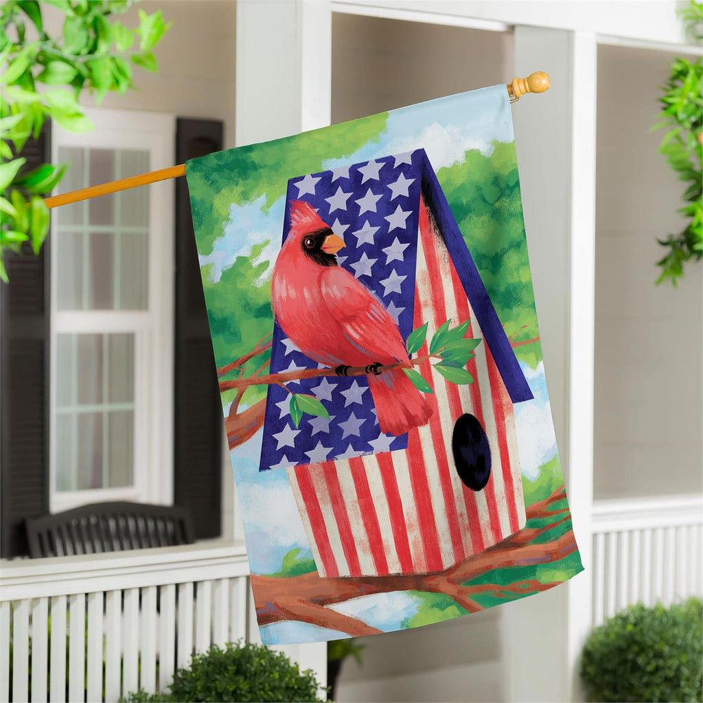 Patriotic Cardinal Birdhouse Suede House Flag