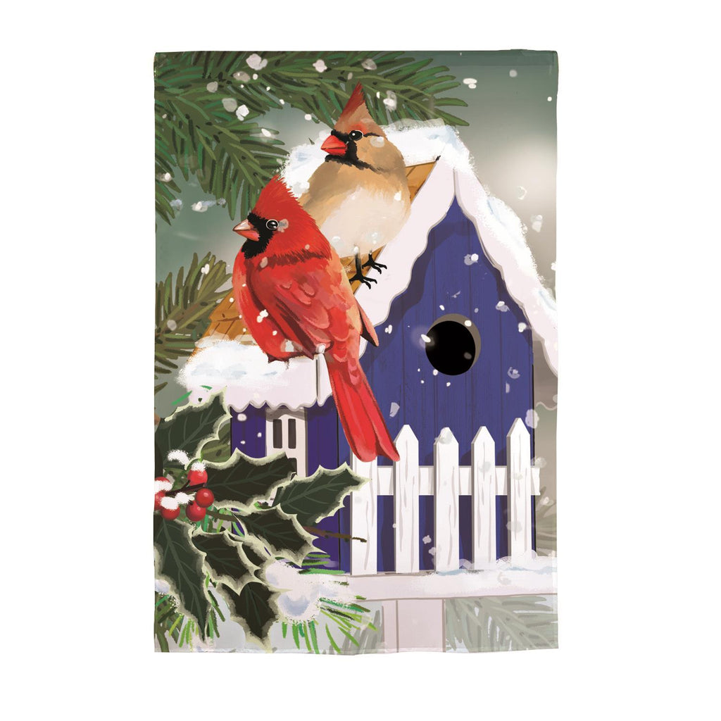 • Features winter cardinals and birdhouse