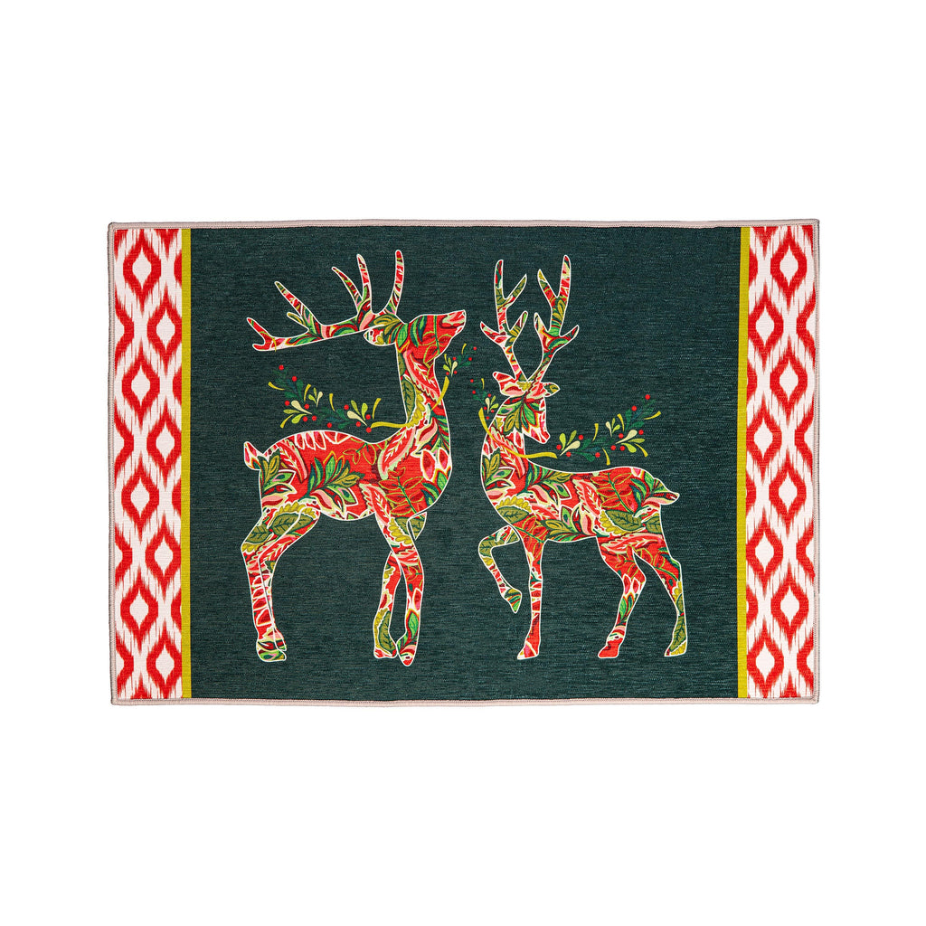 Enhance your home with the Patterned Reindeer Washable Mat, measuring 24" x 36". This festive mat features vibrant reindeer designs, perfect for adding a holiday touch to any room. Crafted for durability and easy maintenance, it’s ideal for high-traffic areas. The mat’s low-profile design prevents tripping hazards and fits seamlessly under doors. Its washable material ensures it stays looking fresh all season long.