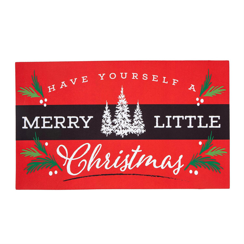 Bring festive charm to your entryway with the Merry Little Christmas Sassafras Estate Switch Mat. Measuring 30 inches in width and 18 inches in height, this delightful mat adds a warm holiday greeting to your home. Designed with vibrant red and black colors, it features a cheerful message and decorative evergreen accents. Perfect for the holiday season, this durable mat is ideal for high-traffic areas, providing both style and functionality. Easy to clean and switch out, it's an effortless way to spread holiday cheer.