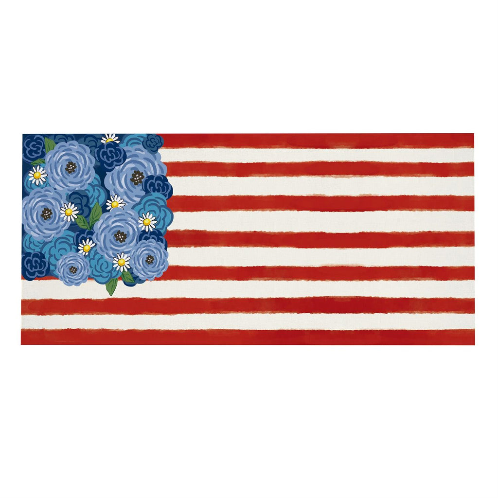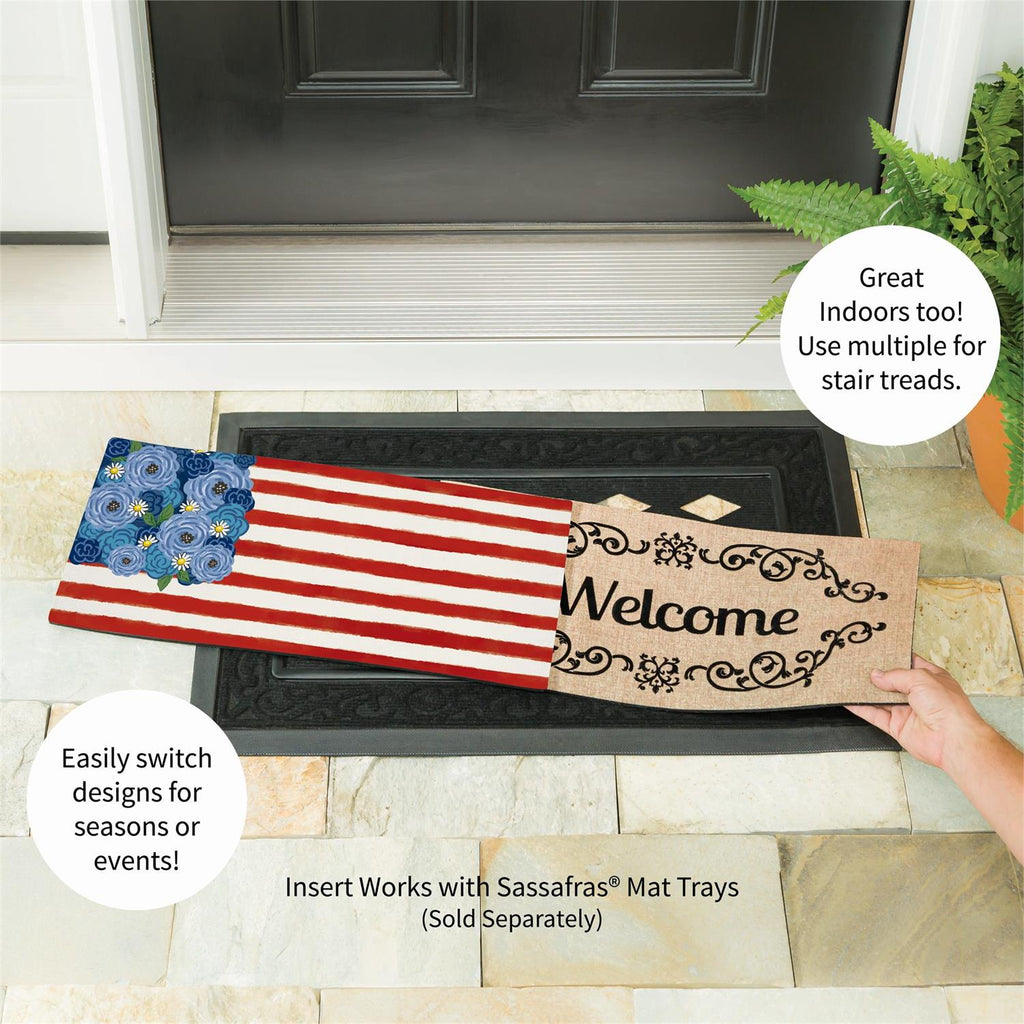 Celebrate patriotism with the American Classic Floral Sassafras Switch Mat. This durable mat features a unique blend of traditional American flag elements with a floral twist, perfect for adding a touch of charm to your entryway. Crafted to fit standard Sassafras bases, its vibrant colors and intricate design make it a standout piece for any home. Ideal for use throughout the year, this mat is not only decorative but functional, offering a warm welcome to guests. Its compact size ensures ease of use and storage, making it a versatile addition to your décor.