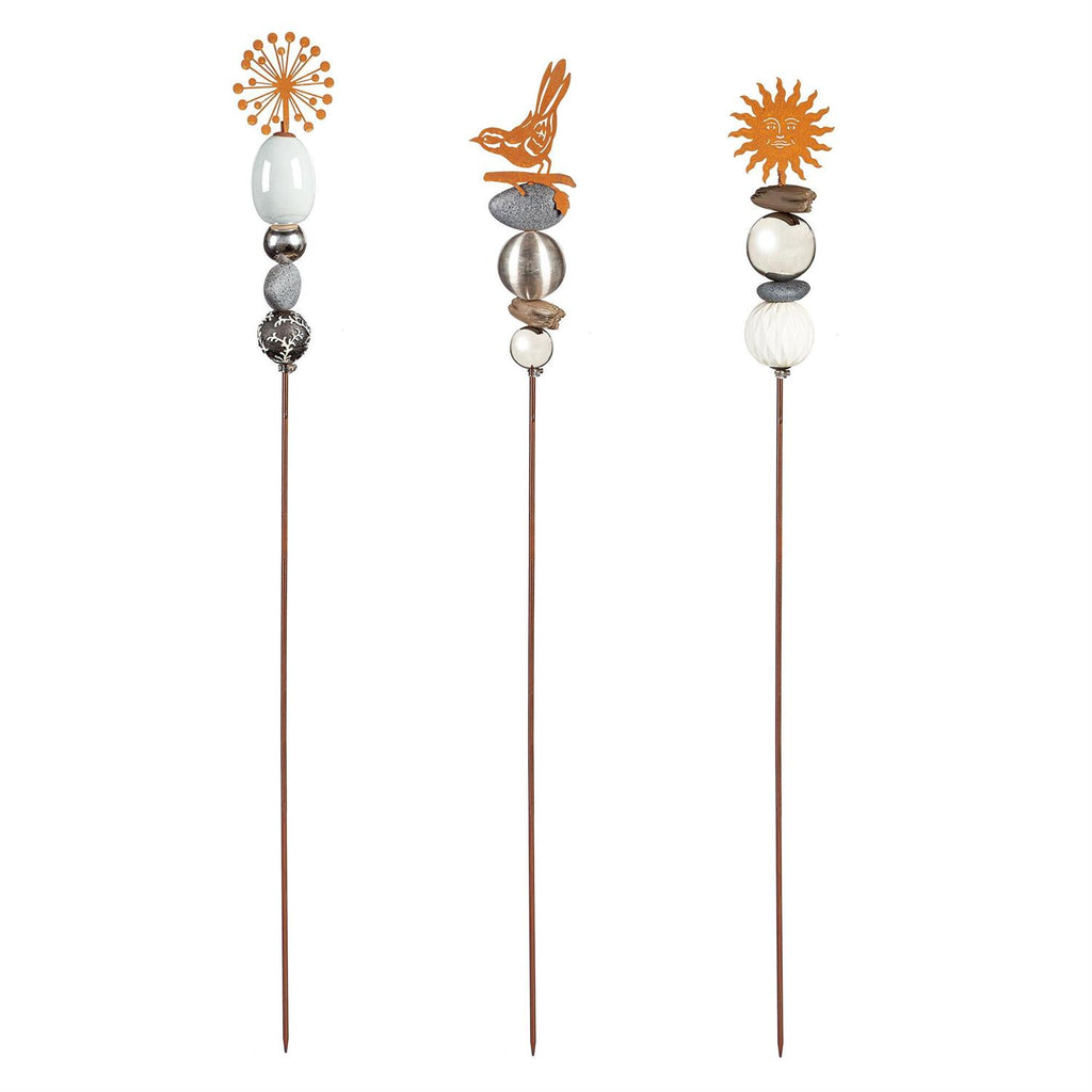 Enhance your garden with the 47-inch Stacked Stone Garden Stakes, featuring a set of three distinct designs. Each stake showcases a unique blend of natural stone and metal elements, topped with decorative motifs like a sun, bird, or floral design. Standing at over 47 inches tall, these stakes make a striking addition to any outdoor space, providing height and visual interest. Their durable construction ensures they withstand various weather conditions, making them perfect for year-round use. Ideal for adding character to flower beds, garden paths, or patio areas.