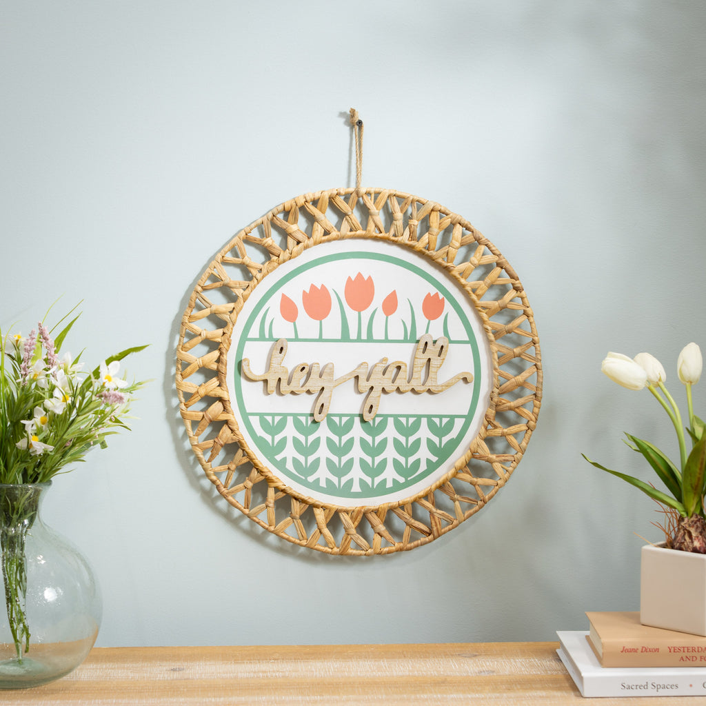 Add a welcoming touch to your home with the 'Hey Yall' Round Wall Decor. Featuring a charming floral design and rustic appeal, it is perfect for any room.