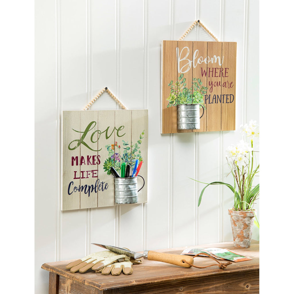 Enhance your living space with this inspirational garden theme wood wall decor, featuring charming potted plant designs and uplifting messages.