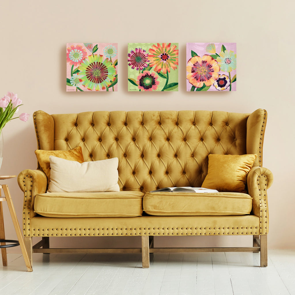 Brighten up any room with this Pastel Flowers Canvas Wall Decor, featuring a vibrant floral design on a 12-inch square canvas.