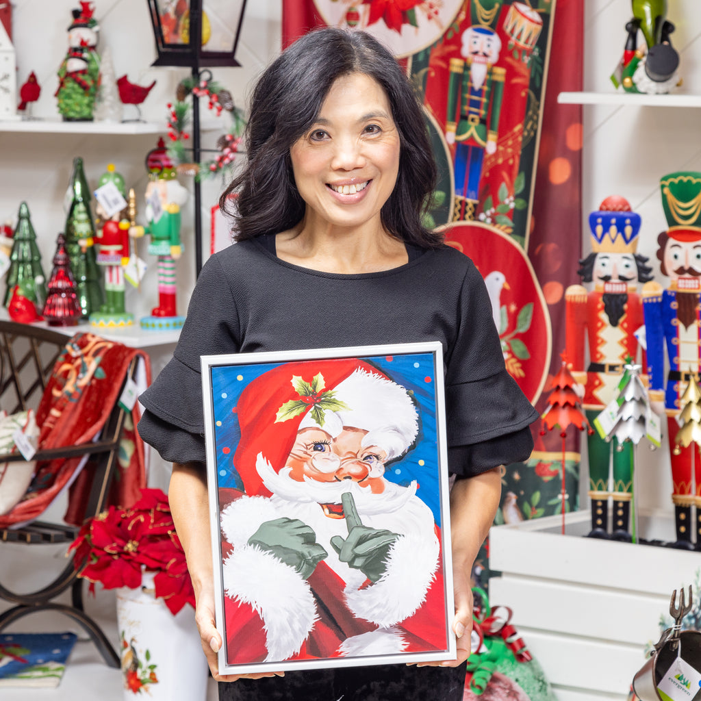 Traditional Santa Wall Decor, LED Canvas with White Frame, Classic Santa, 16" L x 12" H