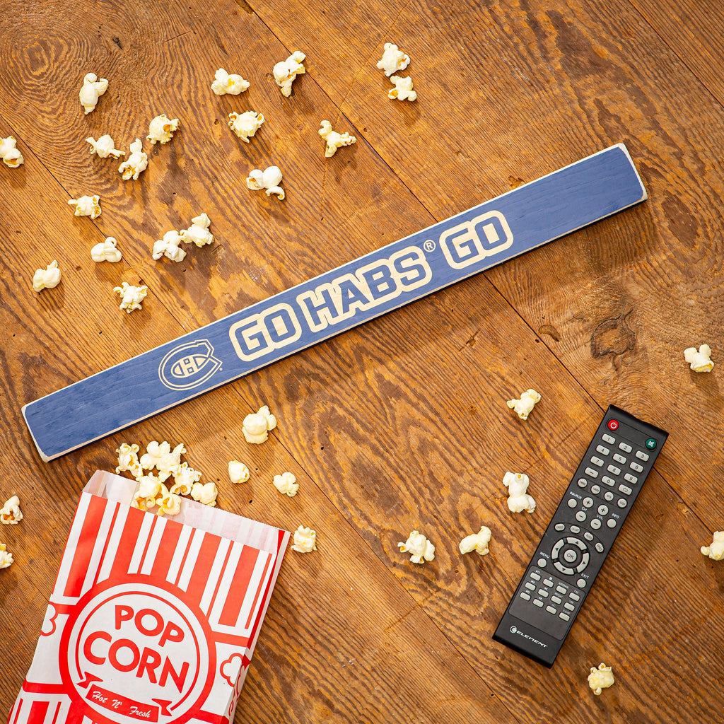 Show your team spirit with this Montreal Canadiens engraved wood sign, perfect for any fan's wall decor. The bold 'Go Habs Go' message celebrates your love for the Canadiens.