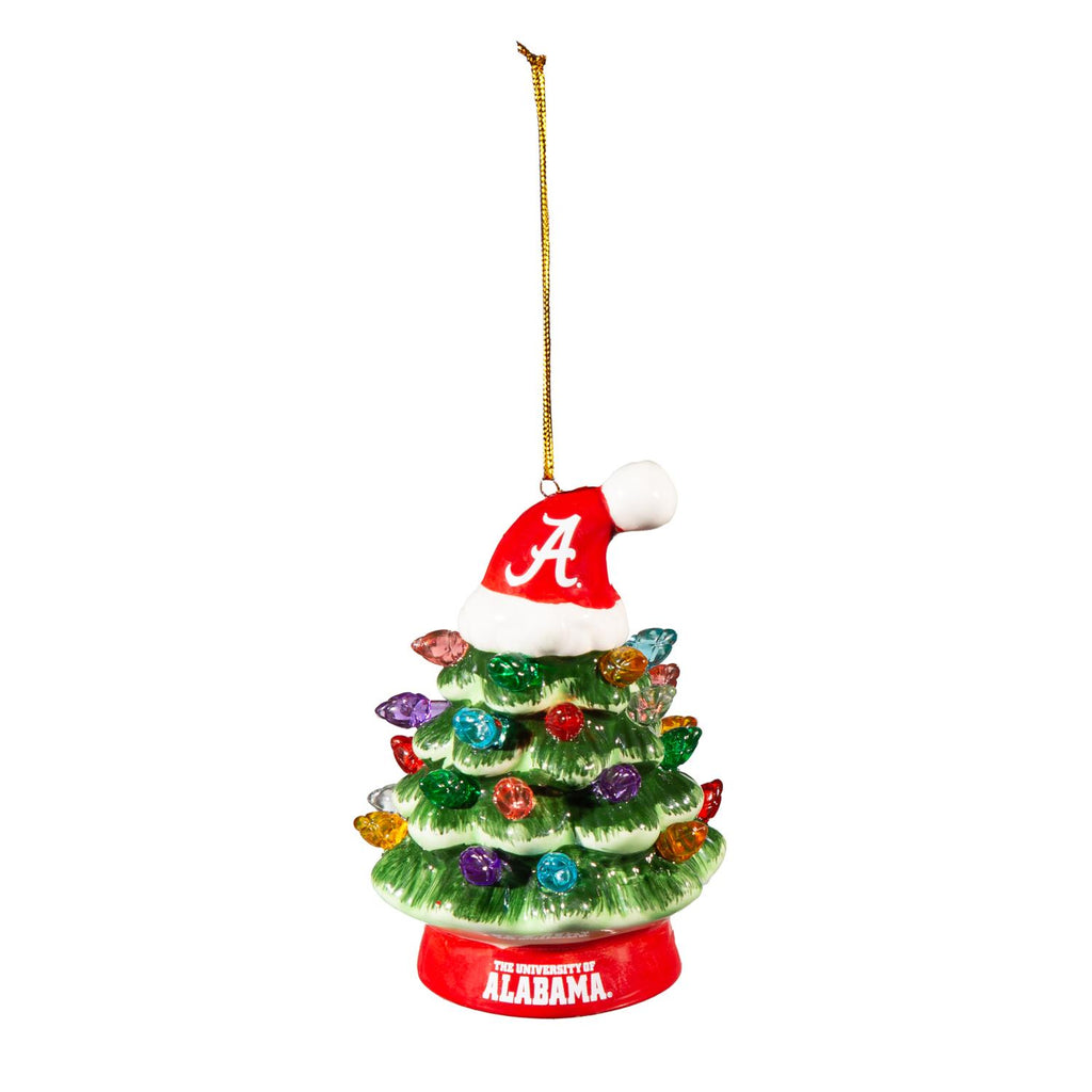 Celebrate the holidays with a touch of team spirit with this 4" LED Ceramic Christmas Tree Ornament. Perfect for University of Alabama fans, this ornament features a festive tree adorned with colorful LED lights and topped with a Santa hat showcasing the team's logo. Crafted from durable ceramic, it adds a vibrant and personalized touch to your holiday décor. Whether you're a dedicated college sports enthusiast or looking for a unique gift, this ornament is a delightful addition to any festive collection.