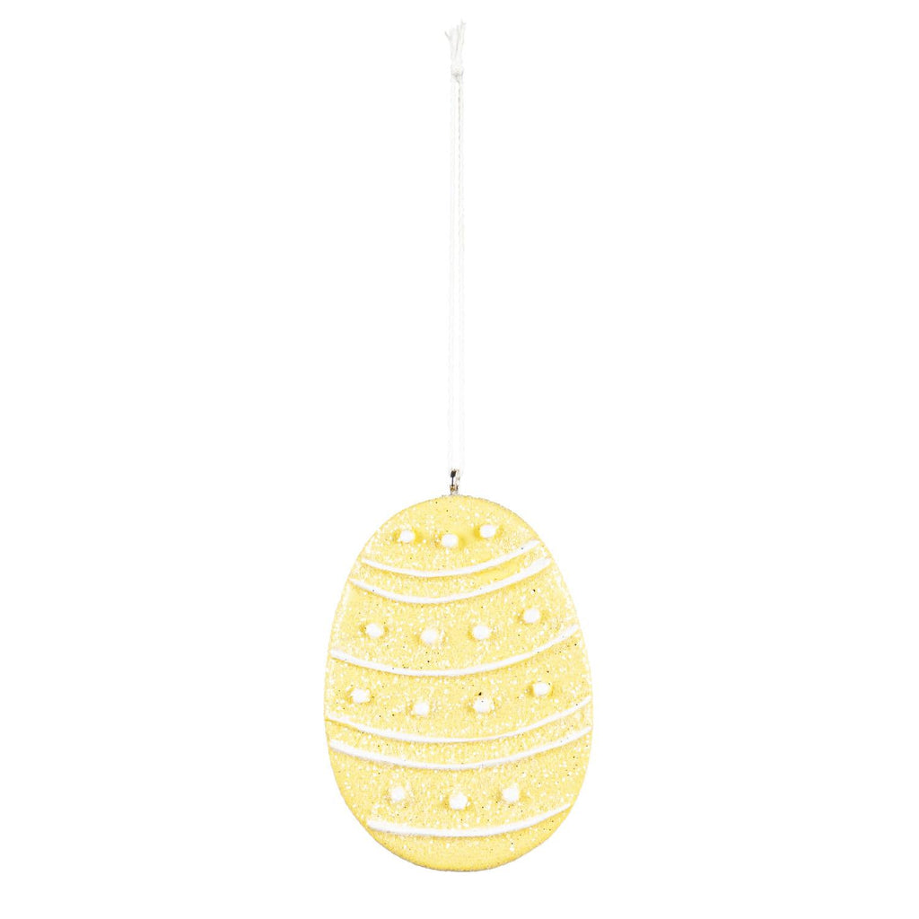Add a touch of festive charm to your home with these 2.5" egg-shaped hanging decorations. Perfect for the spring season, these ornaments come in four assorted pastel colors: pink, yellow, green, and lavender. Each egg is adorned with elegant patterns and subtle glitter, making them ideal for Easter celebrations or brightening up any room. The compact size and lightweight design allow for easy hanging on trees, wreaths, or garlands. Crafted for durability, these decorations are a delightful addition to your seasonal décor collection.