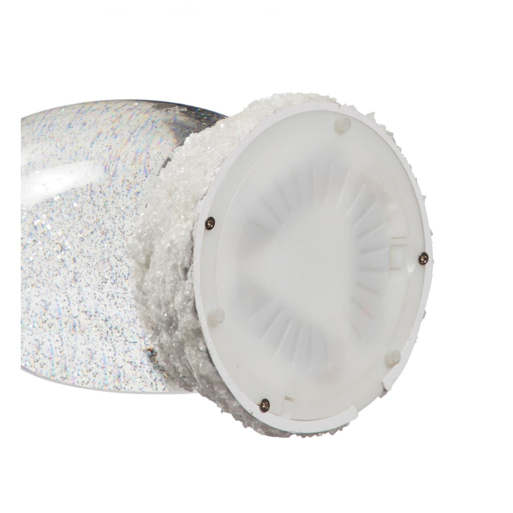 Add a touch of whimsical charm to your holiday décor with this 13" LED Spinning Water Snowman Tabletop Décor. The snowman, adorned with a festive red and white scarf and holding a miniature Christmas tree, stands atop a snowy base. This captivating piece lights up with an LED glow, enhancing the swirling water effect inside. Perfect for mantels, side tables, or anywhere you want to spread holiday cheer. Its compact size makes it an ideal addition to any room, bringing a playful yet elegant vibe to your winter decorations.