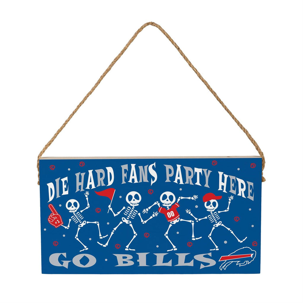 Celebrate your team spirit this Halloween with the Buffalo Bills Halloween Wood Wall Sign. Measuring 6x11 inches, this vibrant sign features playful skeletons and bold lettering to show off your love for the Bills. Hang it easily with the attached rope, and let the sturdy wood construction bring a festive touch to your home décor. Perfect for parties or as a seasonal decoration, it's a must-have for dedicated fans. Whether indoors or out, this sign is sure to catch the eye of fellow enthusiasts and trick-or-treaters alike.