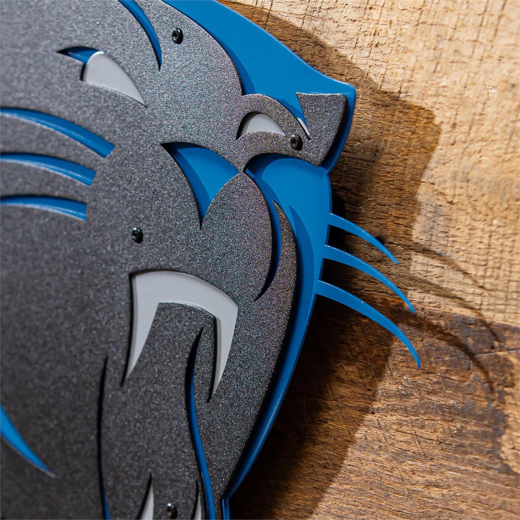Show your team spirit with this striking Carolina Panthers Layered Metal Wall Art. Measuring 15.5 inches in length and 11.5 inches in width, this piece features a dynamic, multi-layered design that gives depth and character to any wall. The sleek combination of colors and precision-cut metal makes it a perfect addition to game rooms, offices, or living spaces. Whether you're celebrating a win or rooting for your team, this wall art piece is a bold statement of your fandom.